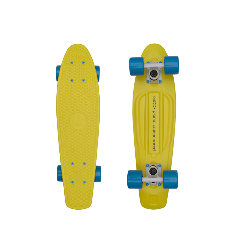 Скейтборд оснащен высококачественной декой из полипропилена размером 56x14 см со специальным цепким покрытием. Алюминиевая подвеска с цветными втулками снабжена полупрозрачными полиуретановыми роликами (с подсветкой). Скейтборд рекомендован детям старше 8 лет и взрослым весом до 100 кг., полностью собран и готов к использованию.